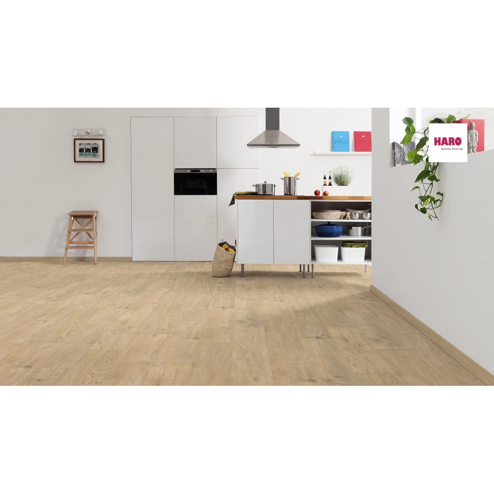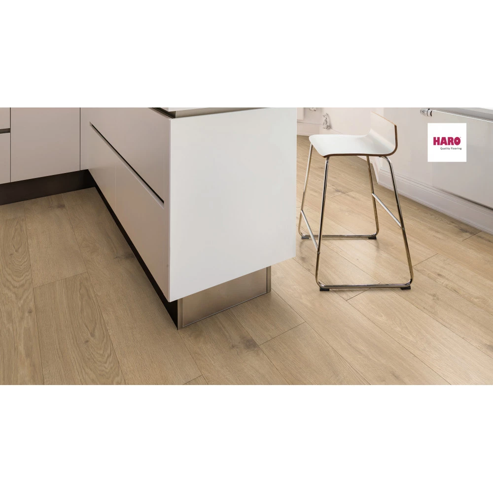 HARO laminatgulvene er kendetegnet ved deres autentiske trælook, deres modstandsdygtighed og den lette lægning. Disse egenskaber gælder naturligvis også for gulve i den nye serie TRITTY 200 Aqua. De opfylder kravene i brugsklasse 33 og er derfor egnede til alle boligarealer og erhvervslokaler med høj belastning. De har en høj fugtbeskyttelse og er særligt slidstærke. Altså det ideelle laminatgulv til gange, køkkener og stuer. Alle mønstre fås både i det kendte plankeformat samt ekstra lange og ekstra brede som Gran Via 4V. Begge har faset kant på alle fire sider. Alle HARO laminatgulve er derudover særligt vedligeholdelsesvenlige og smudsafvisende
